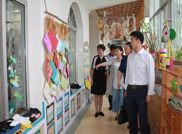 紧接着,刘杰一行参观了以感恩教育为主题的文化墙、干净整齐的“小小的床铺”、“五星级”的党员活动室、温馨有序的教室、优雅有创意的音乐舞蹈室。每走一处,都彰显着文化,寓教于乐,集绿化、美化、童趣化、教育化于一体,是幼儿健康成长的儿童乐园,是快乐求知的育人家园。