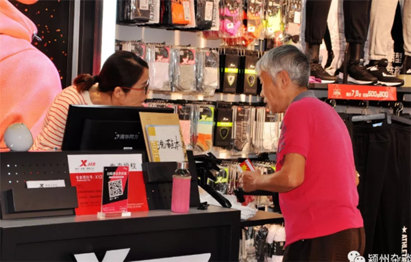在营业员的帮助下,老人们终于挑选好了一身运动服,穿在老头子身上,看似比较合适,但老伴似乎还有点不太放心,她一边帮老头子拉上拉链,一边问道,褂子衣服合身吗。