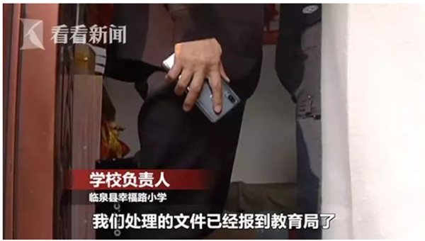 临泉县幸福路小学负责人:“我们处理的文件已经报到教育局了。你需要监控视频的话,要派出所来调。”