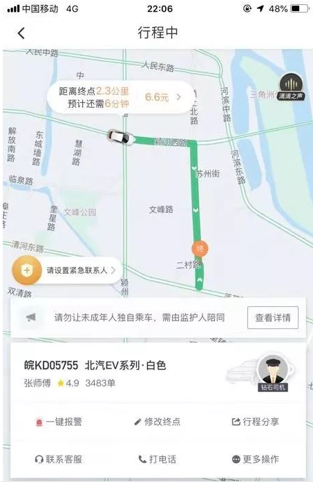 昨晚21时50分左右,市民魏先生跟朋友吃过饭后,用手机叫了一辆滴滴。不一会儿,一辆车牌为“皖KD05755”的北汽EV系列车接了单。又过了一会儿,车主张师傅打来电话,要求魏先生取消订单,遭到了魏先生的拒绝。