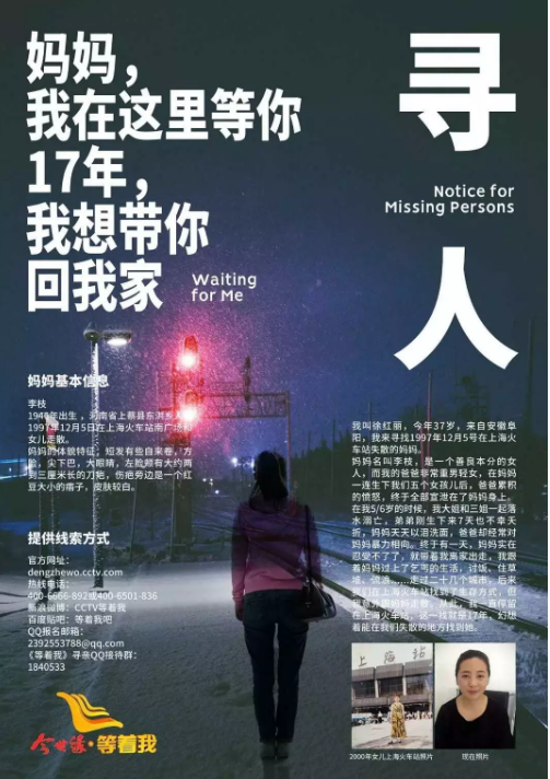 这是一份特殊的寻人启事它遍布在上海火车站的角落一位阜阳女子要寻找被她“弄丢”多年的妈 妈命运坎坷被迫离家 徐红丽是家里五个女儿当中最小的一个,在她4岁的时候,大姐和三姐意外身